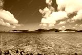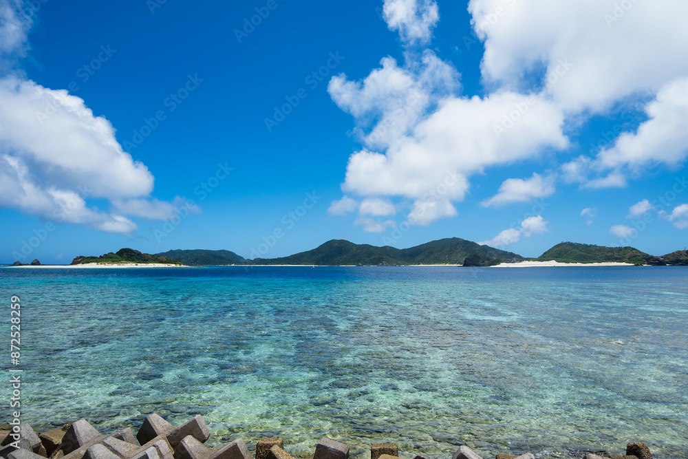 慶良間諸島、座間味島から見た空と海と島の風景