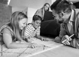 child family mother father happy daughter son education drawing learning creativity girl love together boy fun school student teaching development