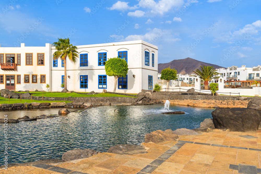 Typical Canarian buildings in Rubicon port, Playa Blanca, Lanzarote, Canary Islands, Spain