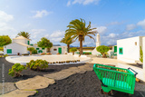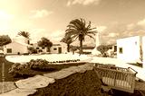 Typical Canarian style buildings and tropical plants, El Campesino village, Lanzarote island, Spain