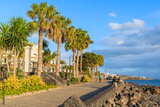 Palm trees on coast of Lanzarote island in Playa Blanca holiday village, Canary Islands, Spain