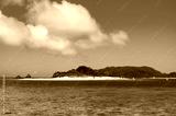 慶良間諸島安慶名敷島、座間味島から見た空と海と島の風景