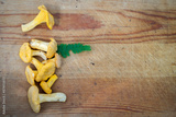 Yellow chanterelle on wooden background