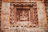 Beautiful details and bas reliefs of ancient Hindu Pancharatna Temple (Temple of the Five Jewels) in Puthia Bangladesh
