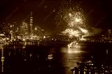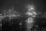 City at night, 4th of July celebrations, fireworks and city lights in Manhattan.