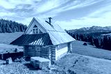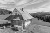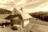 Wooden house on green meadow in summer, Tatra Mountains, Poland