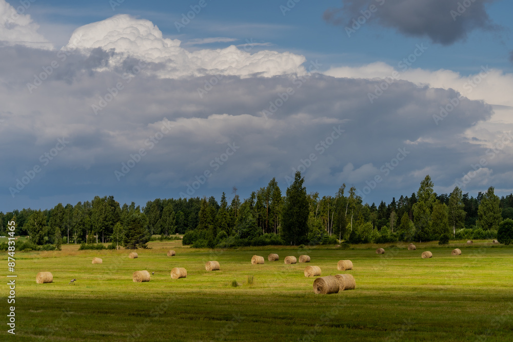 Dark clouds on nice Estonian fields in summer