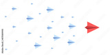 Red and blue paper planes on a white background, flat graphic style, concept of leadership or uniqueness. 3D Rendering