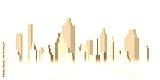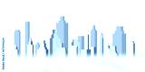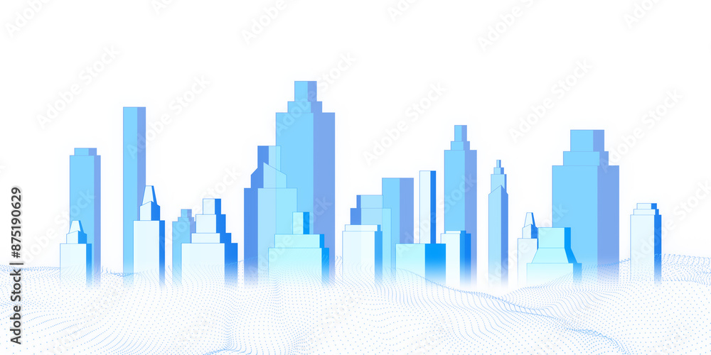 Abstract cityscape illustration with blue skyscrapers, digital wavy grid, on a white background, concept of urban development. 3D Rendering
