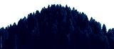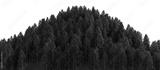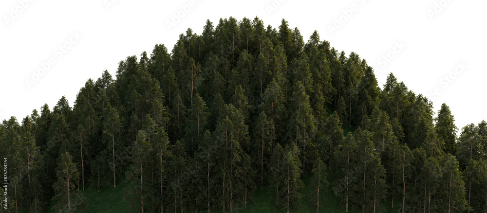 A large hill densely covered with large coniferous trees. 3D rendering.