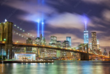 Manhattan skyline with Brooklyn Bridge and the Towers of Lights in New York