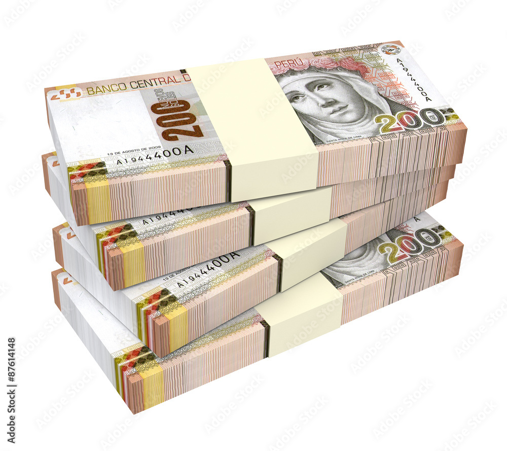 Peruvian nuevos soles isolated on white background. Computer generated 3D photo rendering