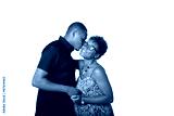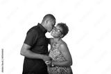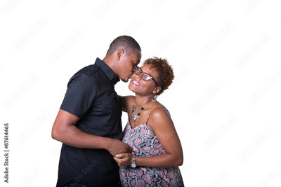 Portrait of an expecting African American couple kissing