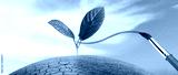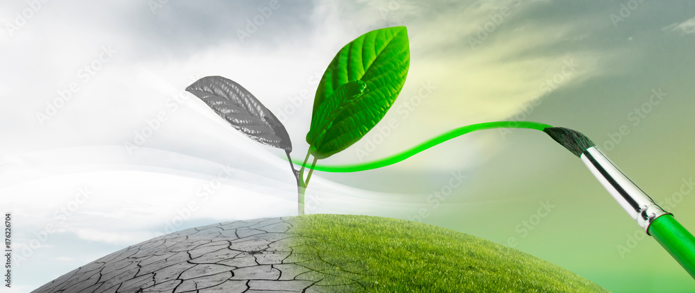 Junge Pflanze wächst aus der Erde zwischen Dürrem Boden und grünem Gras