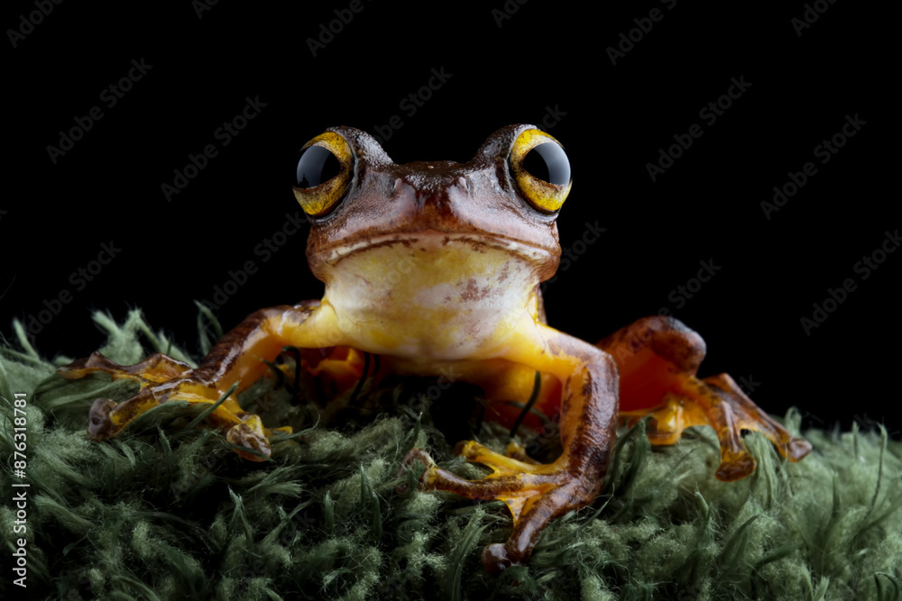 Java flying frog isolated on black background, Rhacophorus margaritifer