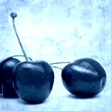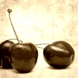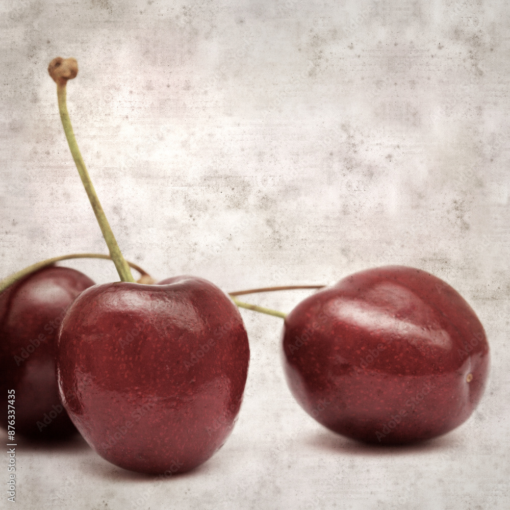 stylish textured old paper square background with dark red cherries