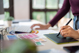 Startup Architect creative designer working with new project ideas color palette at office..