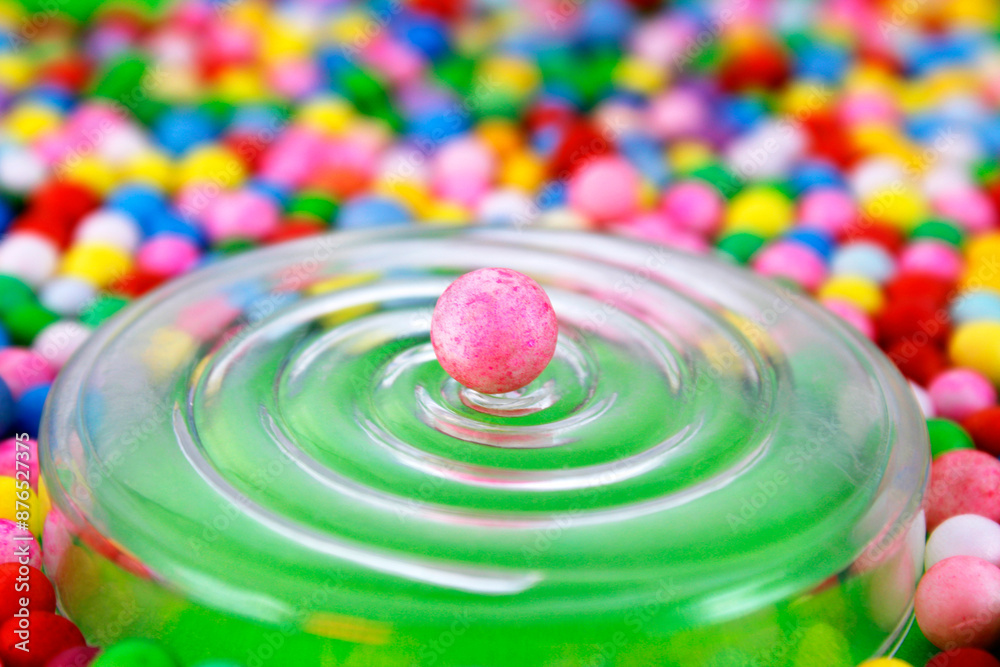 Surface with spiral and sphere in its center separated from a crowd