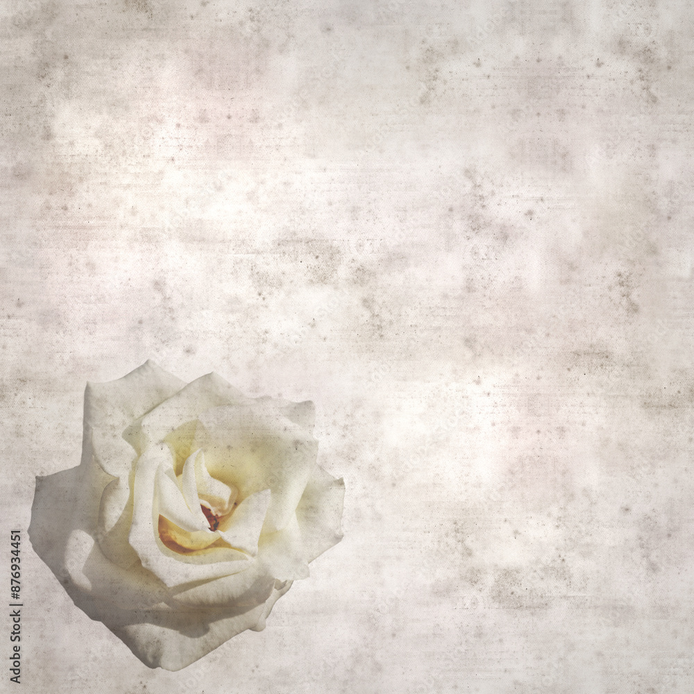 square stylish old textured paper background with white rose