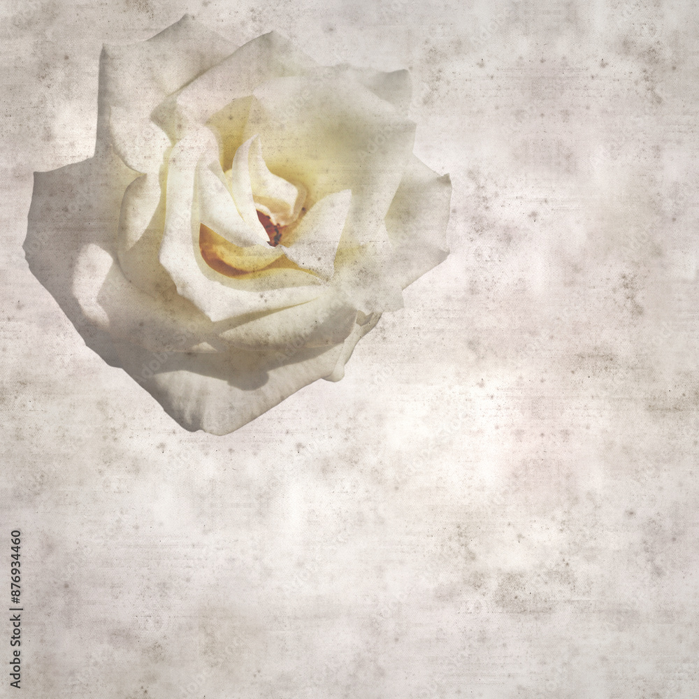 square stylish old textured paper background with white rose