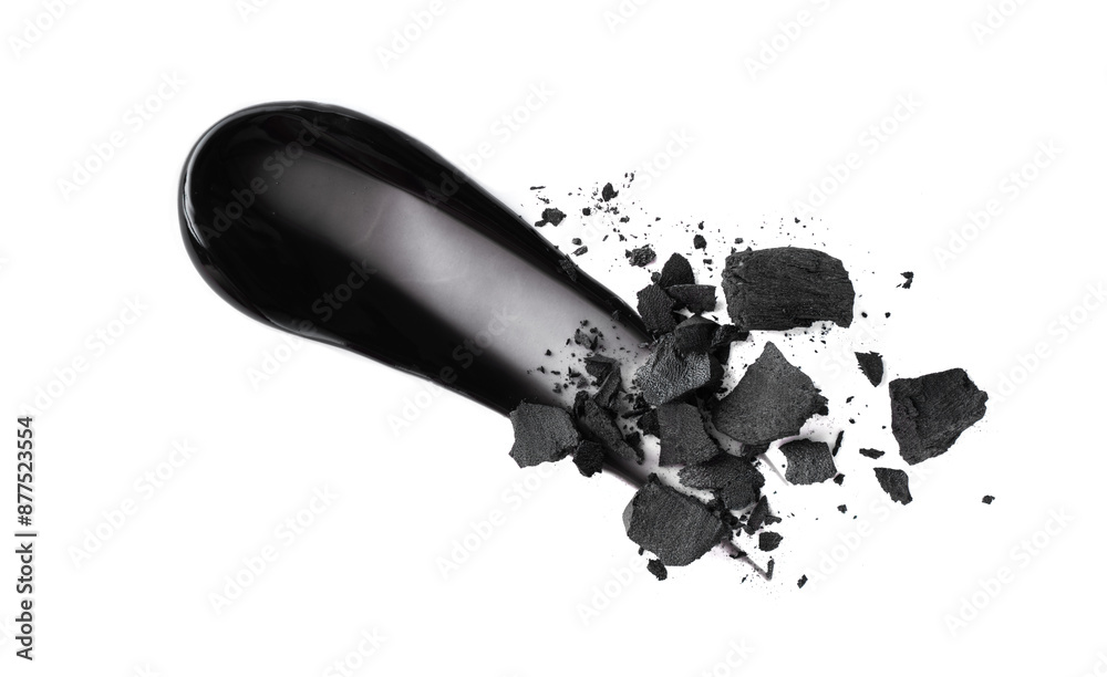 Black charcoal face mask smear isolated on white background. Abstract black charcoal toothpaste gel smear for design.