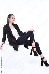 high fashion portrait of young elegant woman. Studio shot