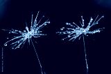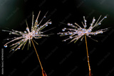 Dandelions with water droplets on a black background in close-up.