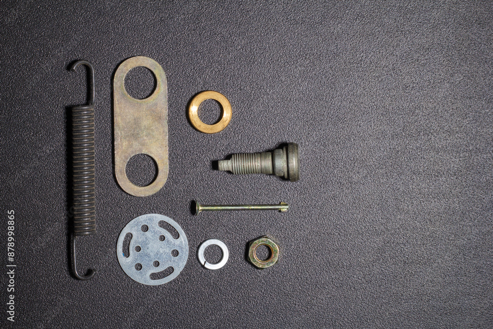 elements of various metal fasteners of objects and products for design solutions, close-up