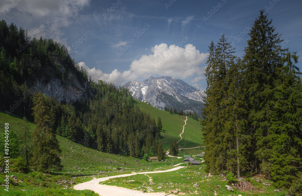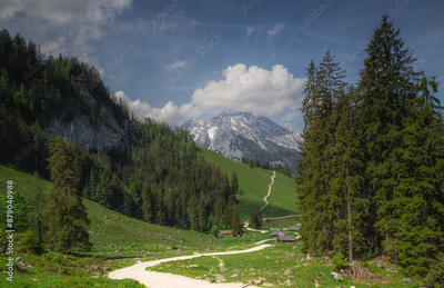 Mountain valley with tracks near Jenner mount in Berchtesgaden National Park