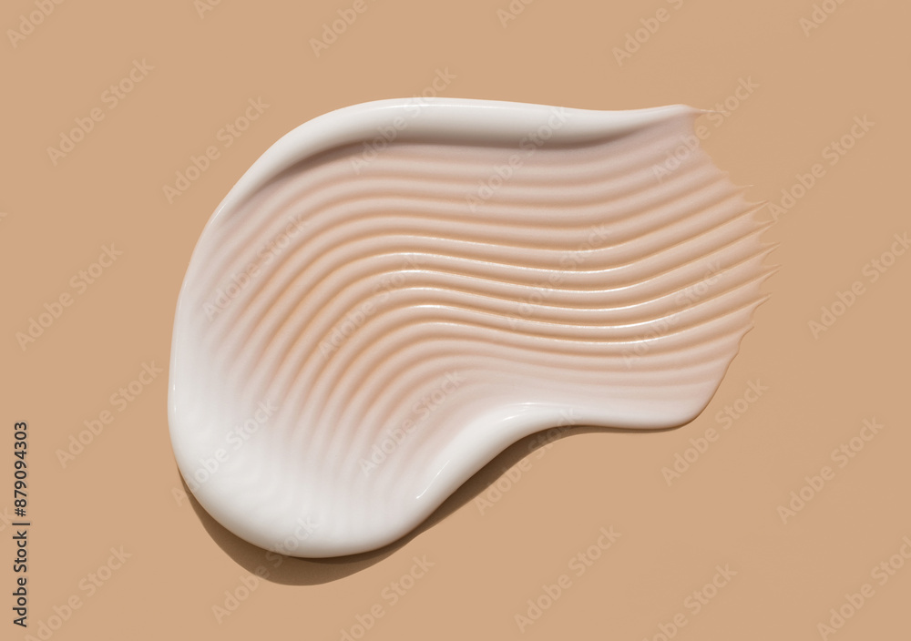 creamy smear of white cosmetic texture close up on beige background skin care concept
