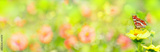 Banner - Garden with beautiful flowers and butterfly