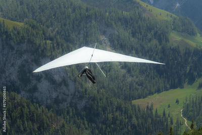 Hang gliding above mountain valley near Jenner mount Berchtesgaden National Park
