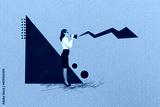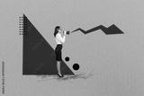 Creative poster collage young businesswoman announce information proclaim loudspeaker sale discount job promotion drawing background