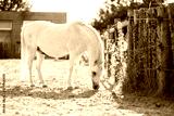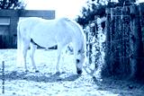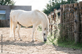 white horse in a field eat grass