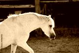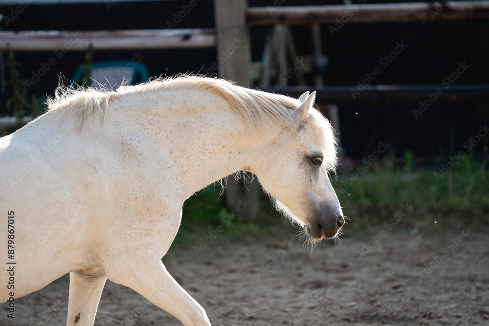 Little cute white welsh pony walk portrait