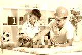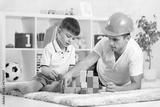 kid boy and father play builders