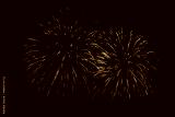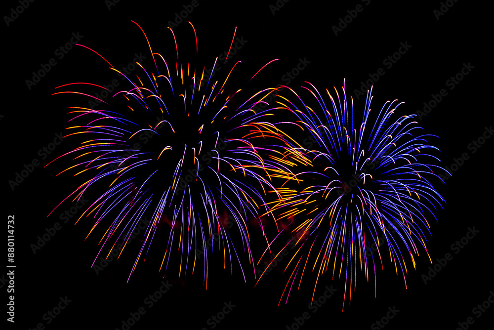 Montreal, Canada - June 27 2024: Fire works show with quarter moon in background at La Ronde in Montreal