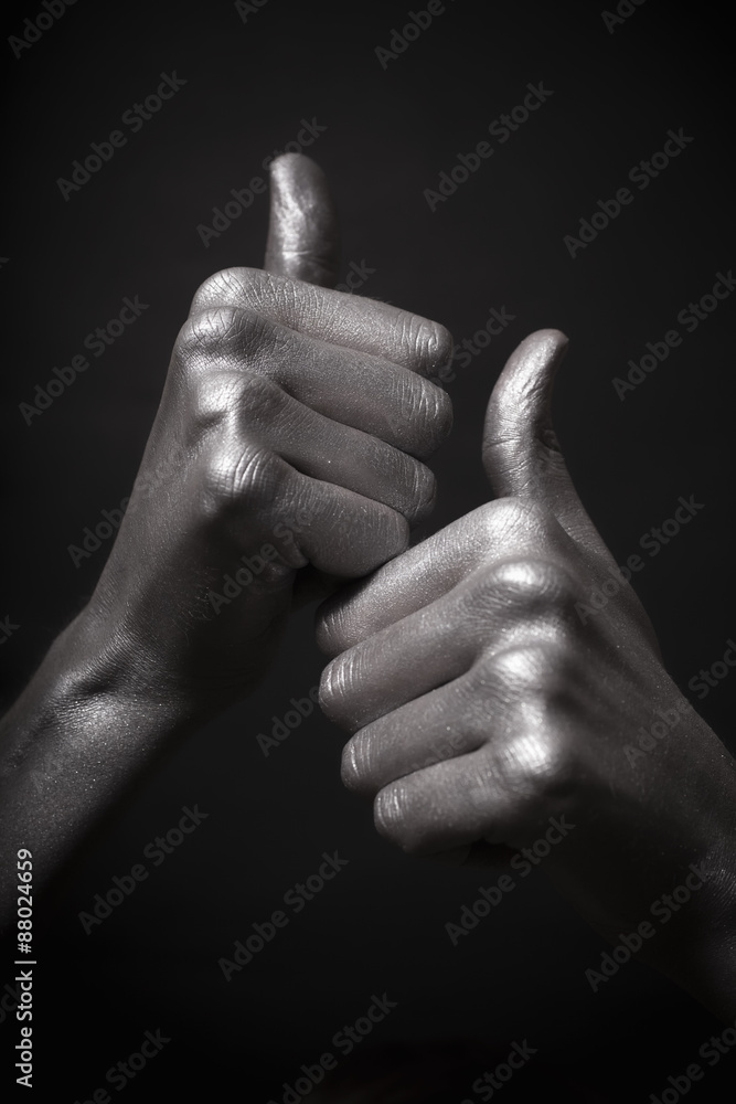 human silver hand with a thumb up