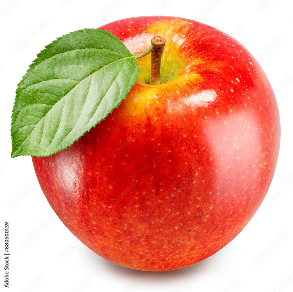 Fresh Red Apple with leaves isolated on white background, Red Apple on white background With clipping path.