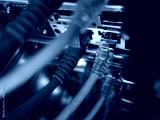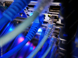 network cables connected to switch - closeup of data center hardware technology