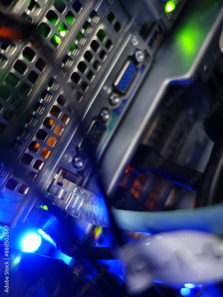 network cables connected to switch - closeup of data center hardware technology