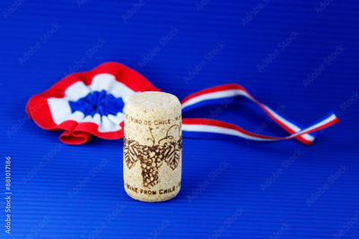 Chilean wine cork with bunch of grapes and rosette with the colors of the flag
