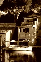 View of idyllic old fishing village harbor of Cala Figuera , Santanyi Mallorca