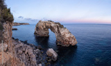 Mallorca, Spain, beautiful coastline with view of the rock arch Es Pontas , Mediterranean Sea, Balearic Islands.