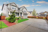 Large modern home with gray exterior.