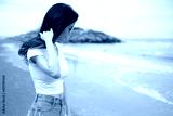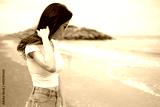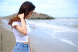 Summer beach background. Portrait young Asian woman with a white shirt in vacation travel.