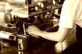 Barista cleaning coffee machine