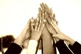 Hand together, solidarity and diversity with unity as university students or colleagues for movement. Group of people, synergy and community for empowerment and collaboration with teamwork or union