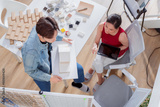 Meeting in a modern architectural office asian architect and interior designer working creative space planing design discuss brainstorm ideas sharing together Architect Team working best solution