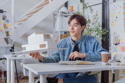 Meeting in a modern architectural office asian architect and interior designer working creative space planing design discuss brainstorm ideas sharing together Architect Team working best solution